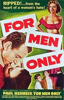 For Men Only is a 1952 American film noir directed by Paul Henreid about hazing on college campuses. Henreid also starred in the film alongside Margaret Field and Kathleen Hughes. The film was distributed by the independent Lippert Pictures. It was the film debut of Russell Johnson. It was also known by the alternative title of The Tall Lie.
