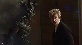![]() The Doctor (Peter Capaldi, right) is summoned when the school prom is attacked by Corakinus (Paul Marc Davis) and the Shadow Kin. | |||