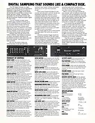 Each module is capable of storing a sample up to 26 seconds. The combined total maximum sampling time with eight modules is three minutes and thirty seconds. Sample rates range from 10 kHz to 60 kHz. High fidelity is achieved at 35 kHz and above, resulting in full bandwidth sounds of over seven seconds per voice module; one minute for all eight modules. In addition to recording individual samples, the modules may be "chained" to form one recording almost seven minutes long. Editing commands allow you to trim and move samples.