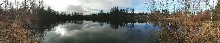 Forbes Lake (47°41′09″N 122°10′47″W) is a 7-acre (2.8 ha), 30-foot (9.1 m) deep kettle lake[9][10] at elevation 246 feet (75 m) above sea level.[11] The city is developing areas around the lake under a Forbes Lake Trail and Park Improvements Project of 16 acres (6.5 ha). Wildlife in the area includes frogs and turtles in the lake; raptor bird species including hawks and bald eagles which use the tall trees around the lake; aquatic birds using the lake and surrounding wetlands include ducks and great blue herons; and mammals such as beaver, deer, and coyotes.[12]