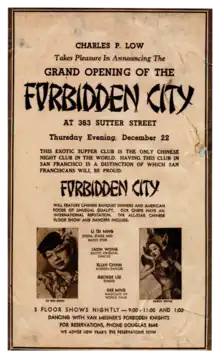 The Forbidden City was a Chinese nightclub and cabaret in San Francisco, which was in business from 1938 to 1970,[1] and operated on the second floor of 363 Sutter Street,[2] between Chinatown and Union Square.[3]