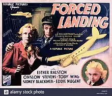 Forced Landing is a 1935 American mystery film directed by Melville W. Brown and written by William Scott Darling.[1] The film stars Esther Ralston, Onslow Stevens, Sidney Blackmer, Toby Wing, Edward Nugent and Barbara Pepper.[2] Forced Landing was released on November 2, 1935, by Republic Pictures.[3]