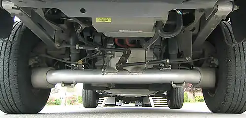 The rear wheels are powered by a six pole alternating current motor operating through a (single speed) three to one reduction transmission and differential. The motor can produce 90 hp (67 kW) and can operate at a maximum speed of 13,000 rpm. The motor, transmission, and differential are contained in a single unit mounted high between the frame rails, transversely between the rear wheels. Half shafts angle downward to drive the wheels.