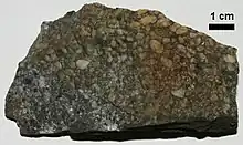 ![]() Conglomerate from Foreknobs Formation, Rt. 994, near western side of bridge going over Raystown Lake, Huntingdon County, Pennsylvania | |