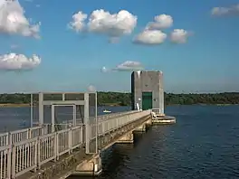 Foremark Reservoir (OS grid reference SK3324) is a reservoir in South Derbyshire owned by Severn Trent which is also a 230-acre (0.93 km2) nature reserve open to the public for walking, fishing, bird watching and horse riding. Severn Trent are working together with the National Trust at Foremark.[1] It is also the base for Burton Sailing Club. The reservoirs source of water is from the River Dove at Egginton,[2] and it was constructed in the 1970s. The reservoir is accessible from the road between Milton and Ticknall. It is north of Ashby-de-la-Zouch and close to Ingleby, Swadlincote and Willington. It is part of the National Forest. Admission is free, but there is a charge for the use of the car park.[3]