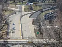 ![]() Forest Park Parkway as seen from the Washington University overpass looking east. | |