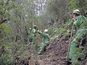 A large amount of effort was directed towards building supporting infrastructure, often in remote areas such as works depots and offices, houses for staff, roads, water supply dams and fire spotting towers. One example was Bill Ah Chow who was a legendary bushman of East Gippsland and became fire lookout at Mt Nugong in the late 1930s.[10]