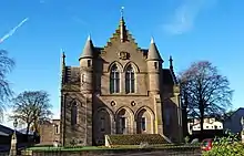Forfar is a parish, town and former royal burgh. The meeting place of the burgh was the Forfar Town and County Hall.[19] It is the county town of Angus, which was officially known as Forfarshire from the 18th century until 1928.[20] The town is represented within Angus Council by the Forfar & District ward, from which four councillors are elected. The members elected from this ward are, as of 2021; Lynne Devine (Scottish National Party), Braden Davy (Scottish Conservative and Unionist), Colin Brown (Independent) and Ian McLaren (Independent).[21]