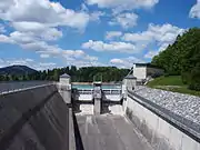 The Roßhaupten Dam was renovated in 2018, which is why the lake was not filled in 2018 (as it is every spring).[1] In 2019 the lake was reflooded.[2]