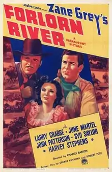Forlorn River is a 1937 American Western film directed by Charles Barton and starring Buster Crabbe, June Martel, and Harvey Stephens. Based on the 1927 novel of the same name by Zane Grey, the film is about a cowboy name Nevada who takes a job on a ranch rounding up horses. He comes into conflict with a powerful cattleman and former bankrobber.