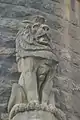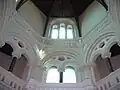 A notable feature of the District Court is the historic wooden canopy located over the seat upon which the Magistrate sits in the main courtroom.[1] The canopy was taken from old Supreme Court which had originally been located at the site. At the corner of Latrobe Street and Russell Street, in the former main entrance, there are numerous holes in the bricks that were caused by shrapnel from the Russell Street Bombing that can still be seen today.