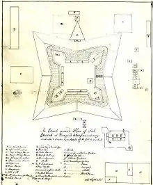 Fort Edward was the site of the Acadian church for the parish of l'Assomption (established 1722).[6] After initially failing to take the settlements of Chignecto, Major Charles Lawrence, on 7 June 1750, he had Acadians destroy their church so that Fort Edward could be built in its place.[7][6][8] In early March 1750, the Acadians and Mi'kmaq took three English prisoners.[9] Gorham was ordered to Fort Edward. On Gorham's march to Pisiquid to secure the area prior to building Fort Edward, the Rangers engaged the Mi'kmaq in the Battle at St. Croix (1750).