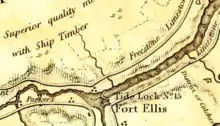 Fort Ellis was a British fort or blockhouse built during the French and Indian War, located at the junction of the Shubenacadie and Stewiacke Rivers, close to Stewiacke, Nova Scotia, Canada.[1] The location was labelled Ville Pierre Hebert by Charles Morris. The 14 Acadian families in the area vacated with the Acadian Exodus.[2] Charles Morris recommended a Fort on the Shubenacadie River in 1753.[3] Governor Lawrence first considered the fort in 1754 as a means to protect Halifax from Mi'kmaq raids.[4] Lawrence decided the fort would not be effective until after the Battle of Fort Beauséjour. The fort was completed on October 18, 1761, shortly after the Halifax Treaties were signed.[5] The fort was to guard the new road built to connect Truro and Halifax against Mi'kmaq raids. The fort was called Fort Ellis after Governor Henry Ellis, who was appointed governor weeks after the forts completion. The fort was never garrisoned and eventually abandoned in 1767. Fort Belcher, named after Governor Jonathan Belcher, was built on Salmon River in Lower Onslow, Nova Scotia (1761–67).[6] Fort Franklin was built at Tatamagouche in 1768, named after Michael Francklin and lasted only a year.[7][8] Fort Morris (Nova Scotia) was named after Charles Morris.