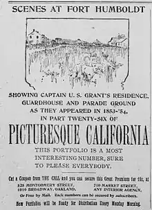 In 1894 a sentry box from Fort Humboldt was exhibited at a fair in San Francisco. According to a newspaper article, "Among the Humboldt exhibits there is one which stirs the heart of every patriot and awakens memories of the nation's great captain. It is the original sentry-box of Fort Humboldt, here General Grant did duty when he was there."[9]