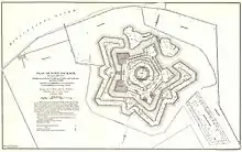 Fort Jackson is a historic masonry fort located 40 miles (64 km) up river from the mouth of the Mississippi River in Plaquemines Parish, Louisiana. It was constructed as a coastal defense of New Orleans, between 1822 and 1832, and it was a battle site during the American Civil War.[2] It is a National Historic Landmark. It was damaged by Hurricanes Katrina and Rita, and its condition is threatened. It is marked Battery Millar on some maps,[3] for the Endicott era work built nearby it.