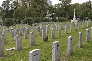 It contains 86 Commonwealth burials of the First World War and 41 from the Second World War. Most of these graves are in a plot at the lower end of the cemetery, next to which stands the Cross of Sacrifice. The HALIFAX (FORT MASSEY) MEMORIAL stands within the cemetery and commemorates two servicemen who were killed in the 1917 explosion but whose bodies were not found.