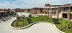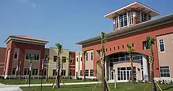The new campus is modeled after that of Treasure Coast High School, and consists of a large central courtyard entirely surrounded by four buildings.[6] There are four main areas containing classrooms in buildings one, two, and four. Classrooms within these areas were created in a modular "pod" format, with classrooms separated by retractable partitions so that areas can be combined if necessary. Building three is the largest of the four and contains the auditorium, cafeteria, gymnasium, automotive shop, and other elective classrooms.[7][8]