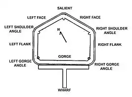 At Left North west casemates [left angle]; at right can be seen the start of the right angle