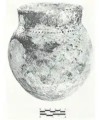 The 1944 excavations yielded several complete vessels associated with burials, which aided in the analysis. The pottery was sorted using the typology introduced by James Fitting based on the study of pottery at the nearby Michigan site of Riviere Au Vase.[5]