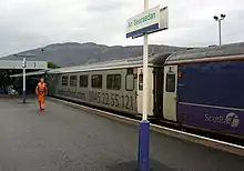 An overnight train, the Caledonian sleeper, has its terminus at Fort William; this service is known colloquially as "The Deerstalker".[22] The stands for local buses and express coaches are on MacFarlane Way adjacent to the railway station.[23]