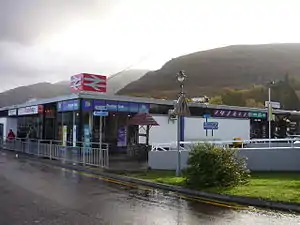 Fort William railway station is a railway station serving the town of Fort William in the Highland region of Scotland. It is on the West Highland line, between Spean Bridge and Banavie, measured 99 miles 37 chains (160.1 km) from Craigendoran Junction, at the southern end of the line near Helensburgh.[4] The station is operated by ScotRail, who operate most services from the station, as well as Caledonian Sleeper, and The Jacobite, an excursion operated by West Coast Railways.