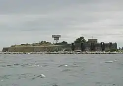 Fort Wool was one of more than 40 forts developed after the War of 1812, when British forces sailed the Chesapeake Bay to burn the Capital.[6] This program was later known as the third system of U.S. fortifications. Designed by Brigadier General of Engineers Simon Bernard, an expatriate Frenchman who had served as a general of engineers under Napoleon, Fort Wool was constructed on a shoal of ballast stones dumped as sailing ships entered Hampton's harbor and was originally intended to have three tiers of casemates and a barbette tier with 216 muzzle-loading cannon, although it never reached this size. Only two-thirds of the fort's bottom two tiers were completed.[7] Fort Wool was built to maintain a crossfire with Fort Monroe, located directly across the channel, thereby protecting the entrance to the harbor.[8]