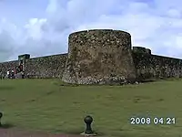 The Fortaleza San Felipe is a historic Spanish fortress located in the north of Dominican Republic in the province of Puerto Plata. It is also known as El Morro de San Felipe and was used to protect the City of Puerto Plata from pirates and corsairs.[1] It is located on a hill at the Puntilla del Malecón, overlooking the Atlantic Ocean; its strategic location protected the entrance to the city's seaport. The construction of the fort was commissioned by King Felipe II of Spain in 1564, and it was completed in 1577 by Don Rengifo de Angulo, the fort's mayor.[2]
