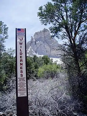 A variety of vegetation grows in the Fortification Range Wilderness, including ponderosa pine, pinyon pine, juniper, aspen, and cottonwood trees in the northern portion of the Wilderness. The southern portion is densely forested with pinyon and juniper. Common wildlife found the Wilderness includes mule deer, antelope, mountain lion, and various raptors.[3]