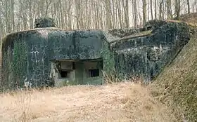 Mont des Welches and Michelsberg suffered the only significant German assaults during the campaign. The German 95th Infantry Division under von Amim advanced on Michelsberg and Mont des Welches on 21 June, with advance patrols taking fire the same day. An assault using 8.8cm guns was mounted against Blocks 2 and 3, but was disrupted by fire from the entry block's cloches. Artillery fire from blocks 4 and 6 and fire from the personnel entry destroyed a German battery. Hackenberg joined to provide further support. Michelsberg repelled a full German attack on 22 June 1940, with help from Mont des Welches and Hackenberg. German artillery hit Block 3's cloches and the façade of Block 2. Block 6 destroyed a German battery with artillery fire.[15] The German 8.8 cm guns were too far from their targets to be effective, and the gros ouvrages were able to give mutual fire support as intended. On the 22nd a German party came to Anzeling for a parley, asking for the surrender of the ouvrage, which was refused.[19][20] Von Arnim's 8.8 cm guns were sent to other sectors, and he contented himself with waiting for further developments.[21] Intermittent firing continued on the 23rd from both sides. The 24th was quiet, with supporting fire for Mont des Welches. As a result of the armistice of 25 June 1940, a cease-fire went into effect of 25 June. During the following days the minefields surrounding the ouvrages were removed and the French commanders negotiated terms for a surrender. On 3 July Anzeling surrendered to German forces.[19][20]