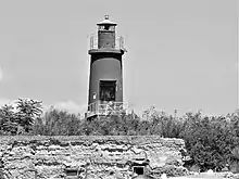 | Shape | cylindrical tower with balcony and lantern atop a 1-storey red service building |