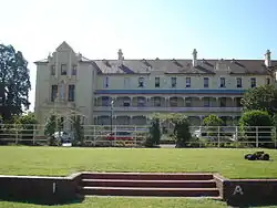 St Patrick's Catholic Church was built in Wickham Street by Father James Hanly, uphill from the Prince Consort Hotel. St Patrick's Convent School was established later at the Wickham Street site. Both were wooden structures.[18] In 1882, the congregation moved to a new (and still current) St Patrick's Church in Morgan Street. On 5 December 1887, Cardinal Moran laid the foundation stone for a new school building in Ivory Street opening onto Hope Street at the rear.[19] The new school opened on January 1889. In 1952 Brisbane City Council announced that it would be undertaking work in Ivory Street as part of a solution to eliminate traffic bottlenecks and St Patrick's School was one of the affected properties.[20] In 1955 the school buildings were relocated to the church grounds in Morgan Street.[21] The school closed on 19 November 1982.[6]