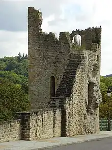 After the Romans had left, the fortification fell into disrepair, until in 963 Count Siegfried of the House of Ardennes acquired the land in exchange for his territories in Feulen near Ettelbrück from St. Maximin's Abbey in Trier. On the Bock promontory, he built a small castle, which was connected to the plateau through a drawbridge. In time, a settlement grew on the plateau. Knights and soldiers were billeted here on the rocky outcrop, while artisans and traders settled in the area beneath it, creating the long-standing social distinction between the upper and the lower city. The settlement had grown to a city by the 12th century, when it was protected by a city wall adjacent to the current Rue du Fossé. In the 14th century, a second city wall was built, which also incorporated the land of the Rham Plateau. A third wall later incorporated the urban area as far as today's Boulevard Royal.[5]