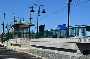 Fortuna station is a station along the SEPTA Lansdale/Doylestown Line. It is located near the corner of North Broad Street and Cowpath Road (Route 463) in Hatfield, Pennsylvania, United States. Cowpath Road was originally an actual cow path. In FY 2013, Fortuna station had a weekday average of 60 boardings and 103 alightings.[2] As part of an out of court settlement with the owners of a cow killed by a Reading Railroad train at the crossing, the station was named Fortuna in honor of the deceased cow.[3]