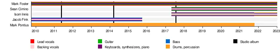 - Mark Foster – lead vocals, guitar, piano, keyboards, synthesizers (2009–present)