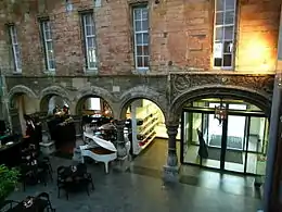 A little later, an arcade in Liège Renaissance style was added on the side of the courtyard which bears similarity to the architecture of the main courtyard of the Prince-Bishops' Palace in Liège. The colonnade frieze has three sculpted medallions with the portraits of (probably) Charles V, his wife Isabella of Portugal and their son Philip II of Spain, who stayed here at several occasions.[1] It was probably here that Alexander Farnese, Duke of Parma and Governor of the Netherlands, signed the declaration that made William the Silent, leader of the Dutch Revolt, an outlaw. It was during this period that the building acquired its name Spanish Government building (Dutch: Spaans Gouvernement).