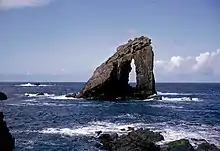 Vagaland's poem "Da Sang o da Papa men"[32] about the fishermen of Papa Stour includes an insistent chorus chant, "Rowin Foula Doon".[33] This refers to the fishermen's practice of rowing their open fishing boat out to sea until the high cliffs of Foula were no longer visible. This entailed the boat's being some 96 kilometres (60 mi) west of Papa Stour.[34][35]