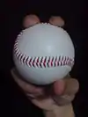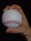 A four-seam fastball, also called a rising fastball, a four-seamer, or a cross-seam fastball, is a pitch in baseball. It is a member of the fastball family of pitches and is usually the hardest (i.e., fastest) ball thrown by a pitcher. It is called what it is because with every rotation of the ball as it is thrown, four seams come into view.[1] A few pitchers at the major league level can sometimes reach a pitch speed of over 100 mph. It is often compared with the two-seam fastball.[2]