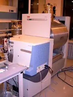 Fourier-transform ion cyclotron resonance mass spectrometry is a type of mass analyzer (or mass spectrometer) for determining the mass-to-charge ratio (m/z) of ions based on the cyclotron frequency of the ions in a fixed magnetic field.[1] The ions are trapped in a Penning trap (a magnetic field with electric trapping plates), where they are excited (at their resonant cyclotron frequencies) to a larger cyclotron radius by an oscillating electric field orthogonal to the magnetic field. After the excitation field is removed, the ions are rotating at their cyclotron frequency in phase (as a "packet" of ions). These ions induce a charge (detected as an image current) on a pair of electrodes as the packets of ions pass close to them. The resulting signal is called a free induction decay (FID), transient or interferogram that consists of a superposition of sine waves. The useful signal is extracted from this data by performing a Fourier transform to give a mass spectrum.