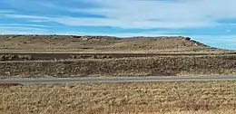 ![]() A ridge capped by a sandstone bed of the Fox Hills Formation west of Limon, Colorado | |