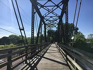 The trail begins at the McHenry County line in Algonquin and runs south just over 38 miles (61.2 kilometres) to Oswego in Kendall County. A 1 mile (1.6 kilometres) gap in Aurora was closed in 2016 by a new protected bike lane.[1] From St. Charles south most of the route is next to Illinois Route 25 on the east side of the river or Route 31 on the west side. The trail crosses the river in several places and between Batavia and North Aurora the trail splits and runs parallel along both sides.[2][3]