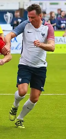 In summer 1999, after nearly 300 official appearances for Lens, Déhu signed with La Liga giants FC Barcelona, but he played just 23 matches across all competitions for the Louis van Gaal-led side,[3] being released by the Catalans at the end of the campaign and netting his only goal to help defeat AIK Fotboll 5–0 in the group stage of the UEFA Champions League.[4] He then returned to his country and joined Paris Saint-Germain F.C. for about €6 million, remaining four years in the capital and winning the Coupe de France in his final one.[5]