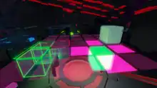 Fract OSC began as a student project by Richard E. Flanagan while at the University of Montreal, working on a post-graduate degree in game design.[1] At the time, Flanagan had named the game Fract, and described it as a "boldly styled Myst-like adventure", having the player explore an abstract world, resembling Tron-like environments, that incorporated music and sound into its aesthetic.[1] These ideas were based on his idea of combines three very personal interests, "early computer culture, adventure games and fundamentals of electronic music", and creating a mechanic that users would experience musical elements early in the game and come to understand how to use these later in the game for larger puzzles.[2] Though not a programmer himself, he learned the Unity engine to build out his ideas, making sure that the engine was capable of capturing the visual feel he wanted for the game while scaling back on some of the larger puzzles he had envisioned.[2] After completing his degree, Flanagan continued to work on the game as to create a single playable level that he submitted for the Independent Games Festival Student Showcase ceremony, while providing this level as a free download for others to test garner interest if he should develop the game further.[3]