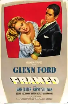 Framed is a 1947 American crime film noir directed by Richard Wallace and starring Glenn Ford. The movie is generally praised by critics as an effective crime thriller despite its low budget.[1]