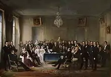 François-Joseph Heim, « François-Guillaume Andrieux faisant la lecture de sa tragédie Junius Brutus dans le foyer à la Comédie-Française le 26 mai 1828 », salon de 1847, Musée de l'Histoire de France.