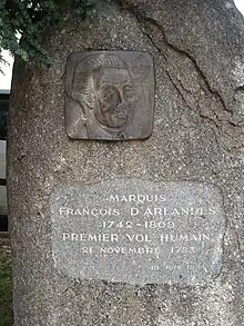 François Laurent d'Arlandes (French pronunciation: [fʁɑ̃swa loʁɑ̃ lə vjø daʁlɑ̃d]; 1742 – 1 May 1809) was a French marquis, soldier and a pioneer of hot air ballooning. He and Jean-François Pilâtre de Rozier made the first manned free balloon flight on 21 November 1783, in a Montgolfier balloon.