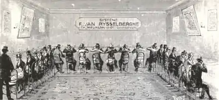 François van Rysselberghe (24 August 1846 – 3 February 1893) was a Belgian scientist who was the forerunner or the inventor of numerous devices in the fields of meteorology and telephony. He invented, in particular, a system allowing several telephone signals to pass through telegraph cables. The generalization of the Van Rysselberghe System (French: Système Van Rysselberghe) in Belgium in 1884, and then abroad, promoted the development of this new mode of communication, making it a pioneer of long-distance telephone communications.