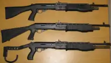 The Franchi SPAS-12 came equipped with a non-adjustable circular aperture rear sight and a large, non-adjustable blade foresight integrated into the barrel. The LAW-12 was semi-automatic only and the SAS-12 was a pump action only. These three "sister" shotguns accepted all SPAS-12 components, notably trigger groups, barrel threaded attachments and stocks. The various magazine extension tubes of the LAW-12 and SAS-12 were never designed to be interchangeable with the SPAS-12 as this would cause issues with the gas selector switch moving from Auto to Pump action on the SPAS-12 model.[7] The extensions have been known to spin off the front of the SPAS-12 during cycling if the extension was not tapered for the SPAS-12 retaining pin.