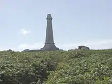 On the highest point of Carn Brea in Cornwall is a 90-foot (27 m) high celtic cross, erected by public subscription in 1836. It is dedicated to Francis Basset and inscribed "The County of Cornwall to the memory of Francis Lord de Dunstanville and Basset A.D. 1836".[7][8] 50°13′16″N 5°14′56″W