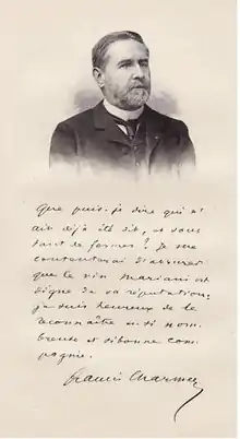 Marie François, known as Francis Charmes (21 April 1848, château de Baradel, Aurillac, Cantal – 4 January 1916, Paris) was a French journalist, diplomat, civil servant, politician and academician.