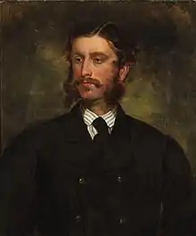 Between 1834 and 1879 Grant contributed 253 works, many of which were full-length portraits, to the exhibitions of the Royal Academy. Among those were equestrian portraits of Queen Victoria and Albert, Prince Consort, painted for Christ's Hospital; the Prince of Wales; an equestrian group of the Duke and Duchess of Beaufort; Sidney Herbert, afterwards Lord Herbert of Lea; Lord John Russell, afterwards Earl Russell; Benjamin Disraeli, afterwards Earl of Beaconsfield; John Hick, afterwards MP for Bolton and Mrs Hick; General Sir James Hope Grant; Sir George Grey; Edward, earl of Derby, first lord of the treasury; Lord Clyde; Viscount Palmerston, painted for Harrow School; Viscount Gough; Lord Truro, lord high chancellor; Sir Frederick Pollock, lord chief baron; Sir William Erle, lord chief justice of the common pleas; John Sumner, archbishop of Canterbury; George Moberly, bishop of Salisbury; and John Gibson Lockhart.[3]